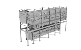One of the toughest areas in a cheese plant is the salting. Not only is it in constant contact with the harsh salt, but also the heat, moisture and chemicals of the cleaning process. As a result we developed our own heavy duty linear rail to provide consistent and adjustable salting to the curd mat while reducing overall maintenance . Supplied on all our new machines, we have also upgraded existing salting units on older machines around the world.